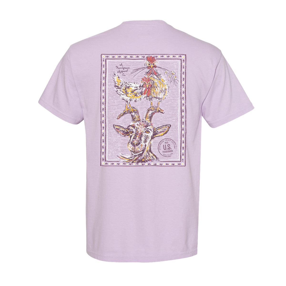 This t-shirt features a cheeky chicken perched atop a curious goat’s head. Perfect for those who love animals and a good laugh, this soft and comfy shirt adds a touch of whimsy to any casual outfit.