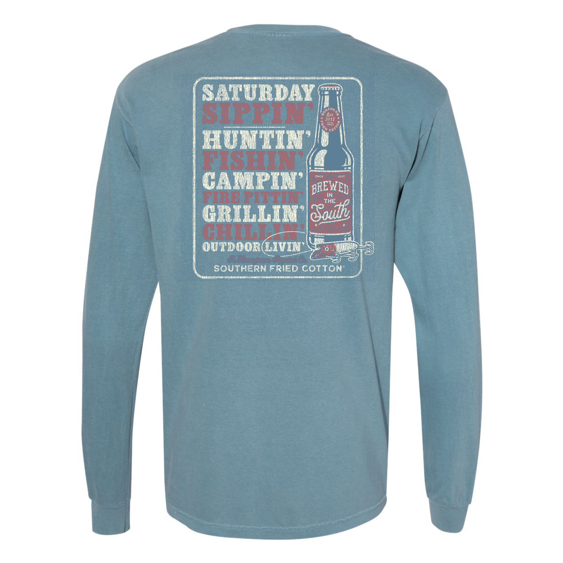 Get ready for Saturdays in the South with our Brewed in the South Long Sleeve shirt! Perfect for drinking your favorite beverage while staying comfortable in our cotton soft shirt. Show your southern pride and love for weekend activities like hunting, fishing, camping, grilling and outdoor living with this must-have shirt!
