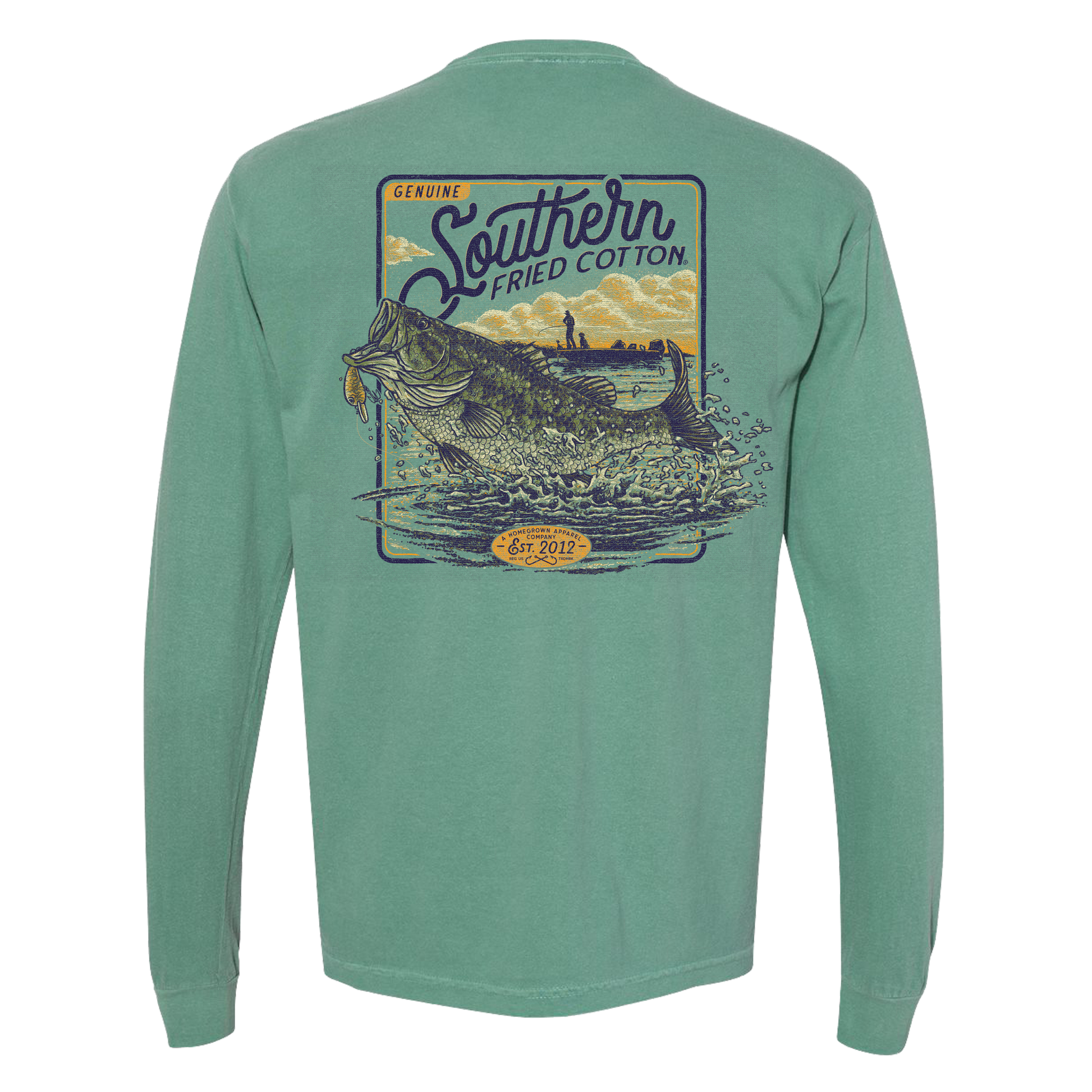 Get hooked on this comfortable long sleeve with a bass fish graphic. Express your passion for fishing with style and comfort. Perfect for outdoor adventures or casual wear. Order yours now!