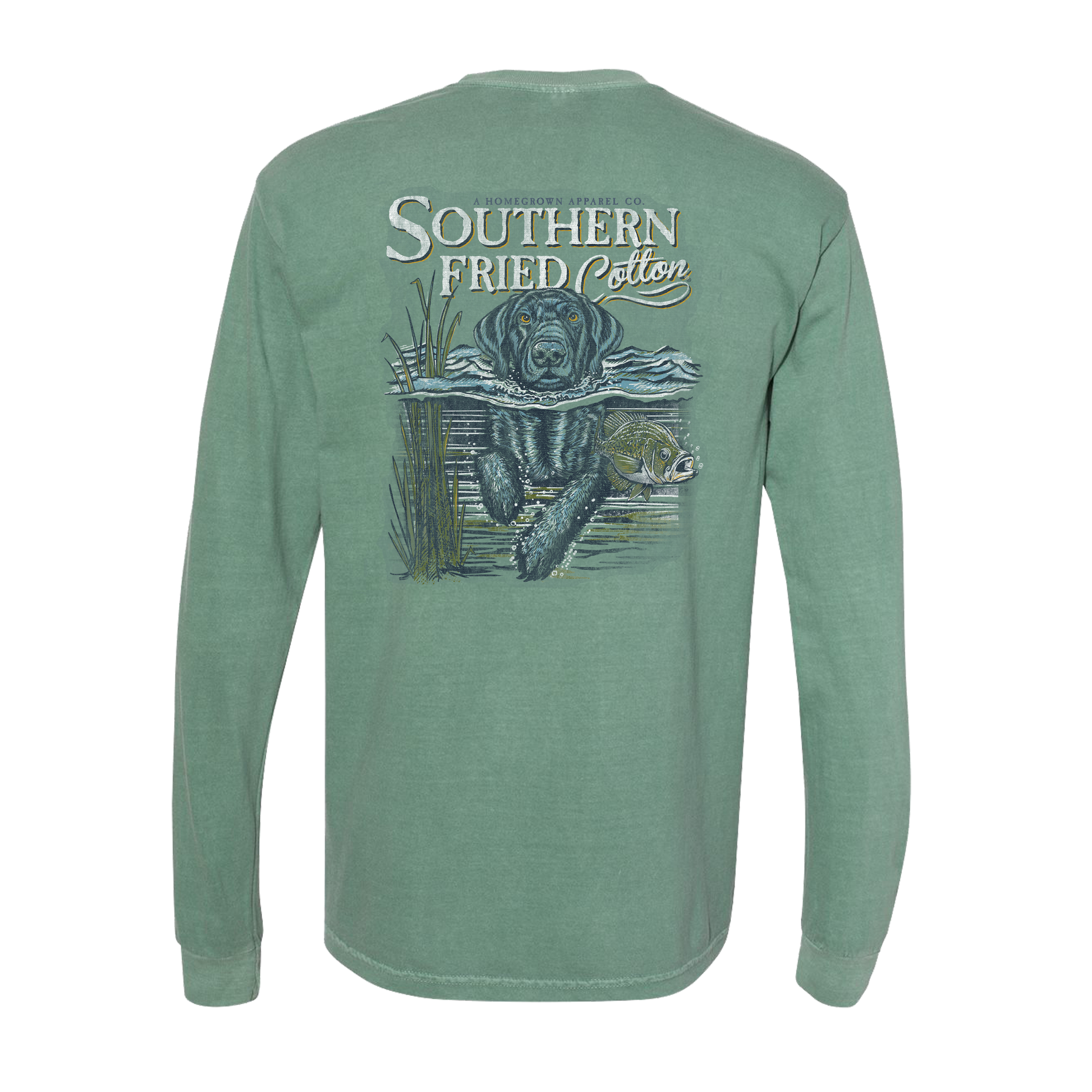 Swim through your day with our Keep Swimming Long Sleeve! Made with the softest fabric for comfort, this shirt features a black lab design and is perfect for everyday wear. Stay stylish and cozy all day long!