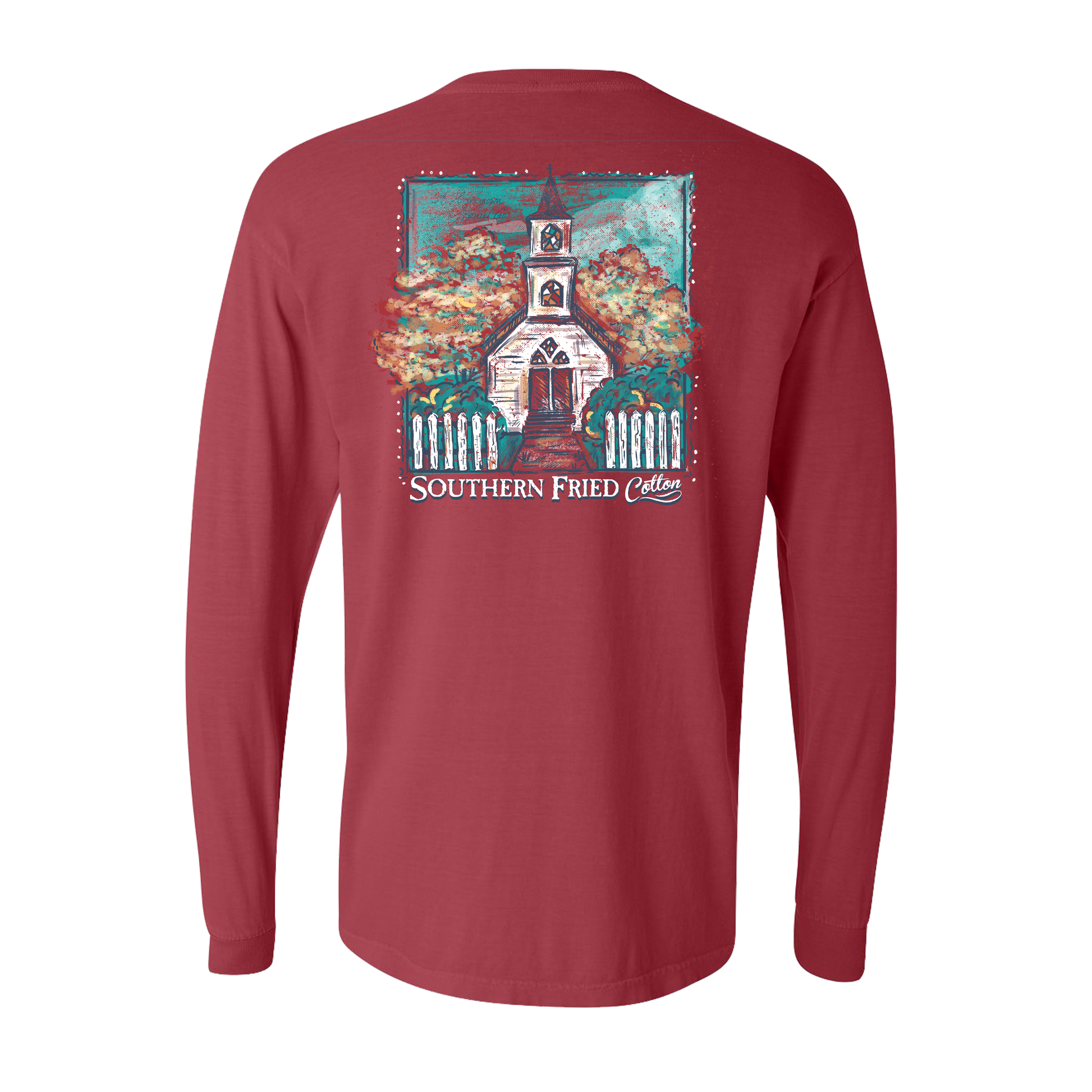 Experience the beauty of fall with our Little White Church Long Sleeve shirt! Featuring a stunning fall scene, this shirt will add a touch of Southern charm to your wardrobe. Perfect for any fall adventure, let our shirt inspire your sense of wonder and adventure!