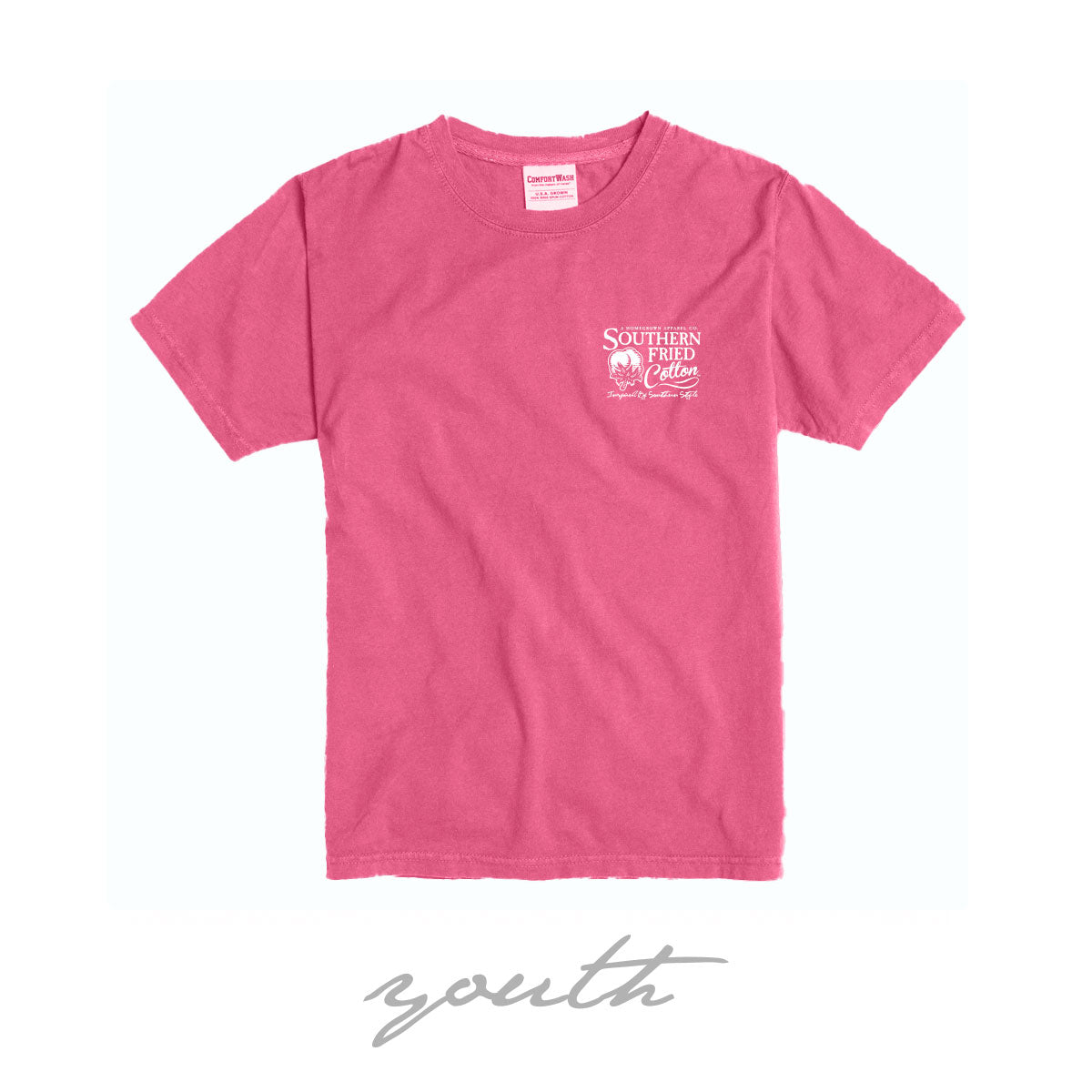 Our Southern Fried Cotton labeled tees are created to have a softer, lightweight feel with a washed look that you will love! They are preshrunk and ring-spun, which means they quickly become the favorite in your drawer!