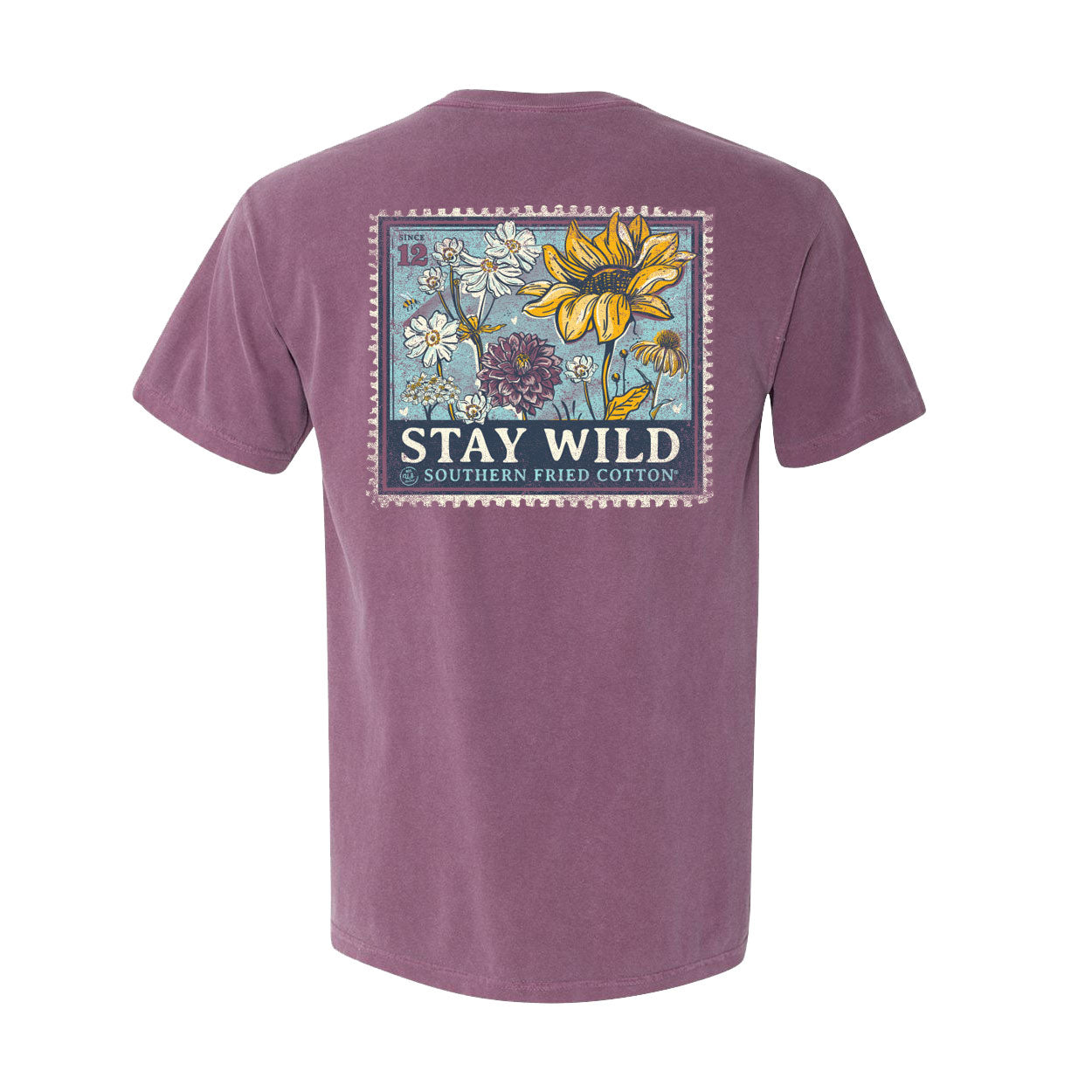 A little wild and a whole lot Southern. The Stay Wild tee blooms with vibrant wildflowers and bold text, set in a vintage-style stamp design. It’s soft, eye-catching, and perfect for those who feel most at home outside.